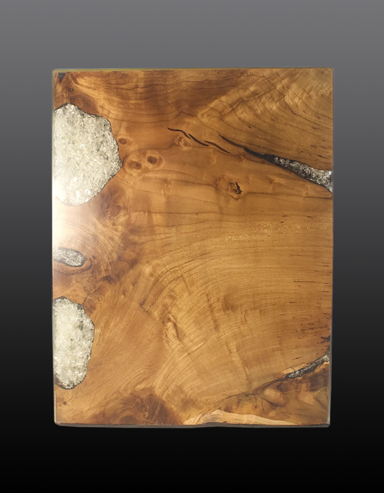Shown: Natural Espresso teakwood with shattered crystals in clear resin.