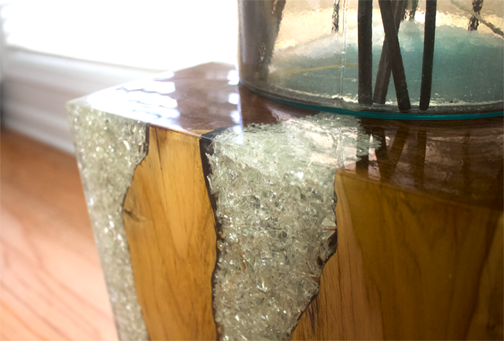 Shown: Natural Espresso teakwood with shattered crystals in clear resin.