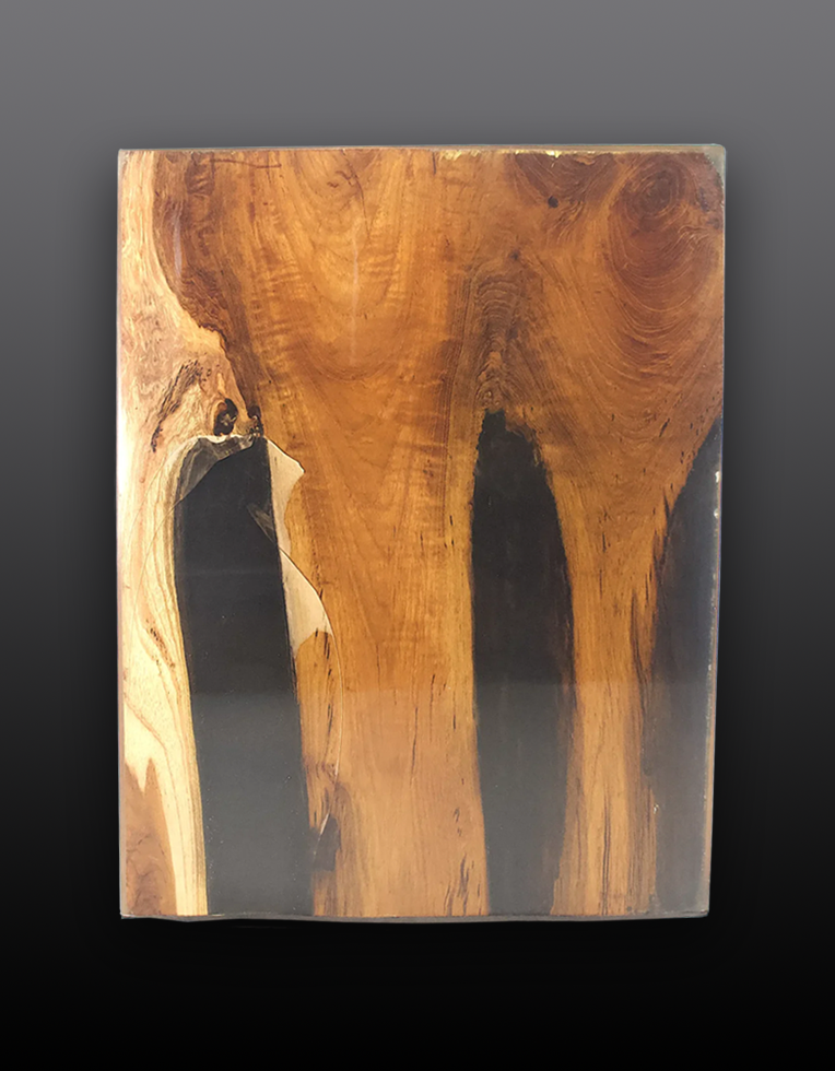 Shown: Natural teakwood emersed in an olive resin river cube.